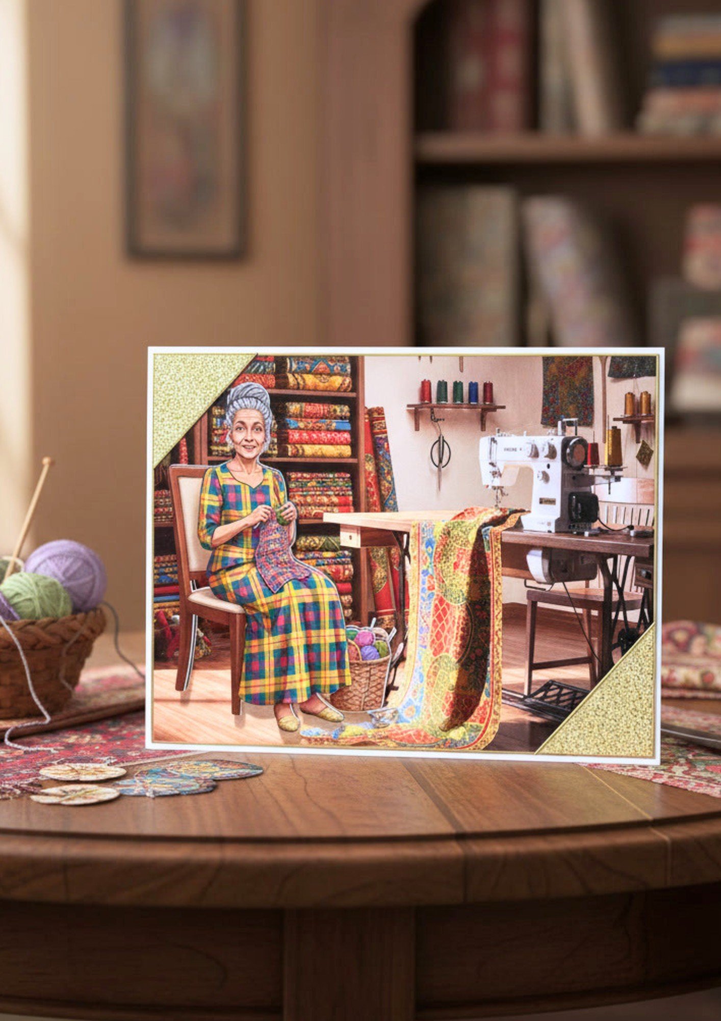 for anyone who loves sewing, quilting, knitting, or textile arts. This card is a warm tribute to creativity, tradition, and the beauty of handmade work.
