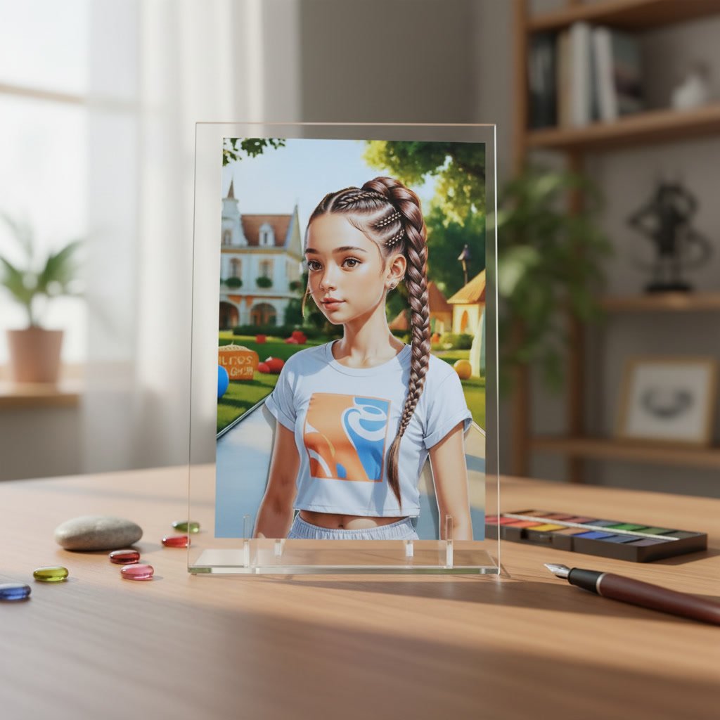 Celebrate style, confidence, and vibrant outdoor beauty with this stunning illustrated greeting card. The artwork features a young person with beautifully detailed braided hair, wearing a crisp white cropped t‑shirt with a bold orange‑and‑blue abstract design. They stand in front of a grand architectural backdrop resembling a stately mansion surrounded by lush greenery, creating a bright, luxurious outdoor setting.
